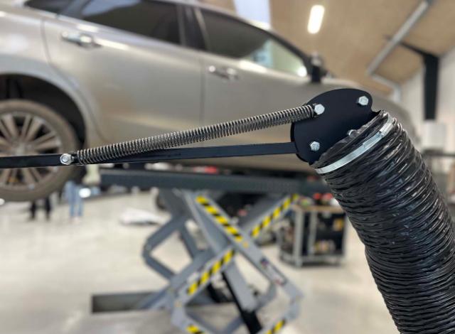 Værkstedet har 2 mobile punktudsugnings-arme, der giver medarbejderne stor fleksibilitet.