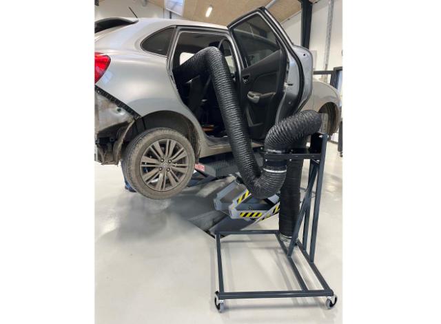 Karosseritekniker Henrik Vilstrup roser især den mobile løsning, der kombinerer brugervenlighed med høj ydeevne. Udsugningen tilknyttes blot centralanlægget via et af udtagene og du er kørende!