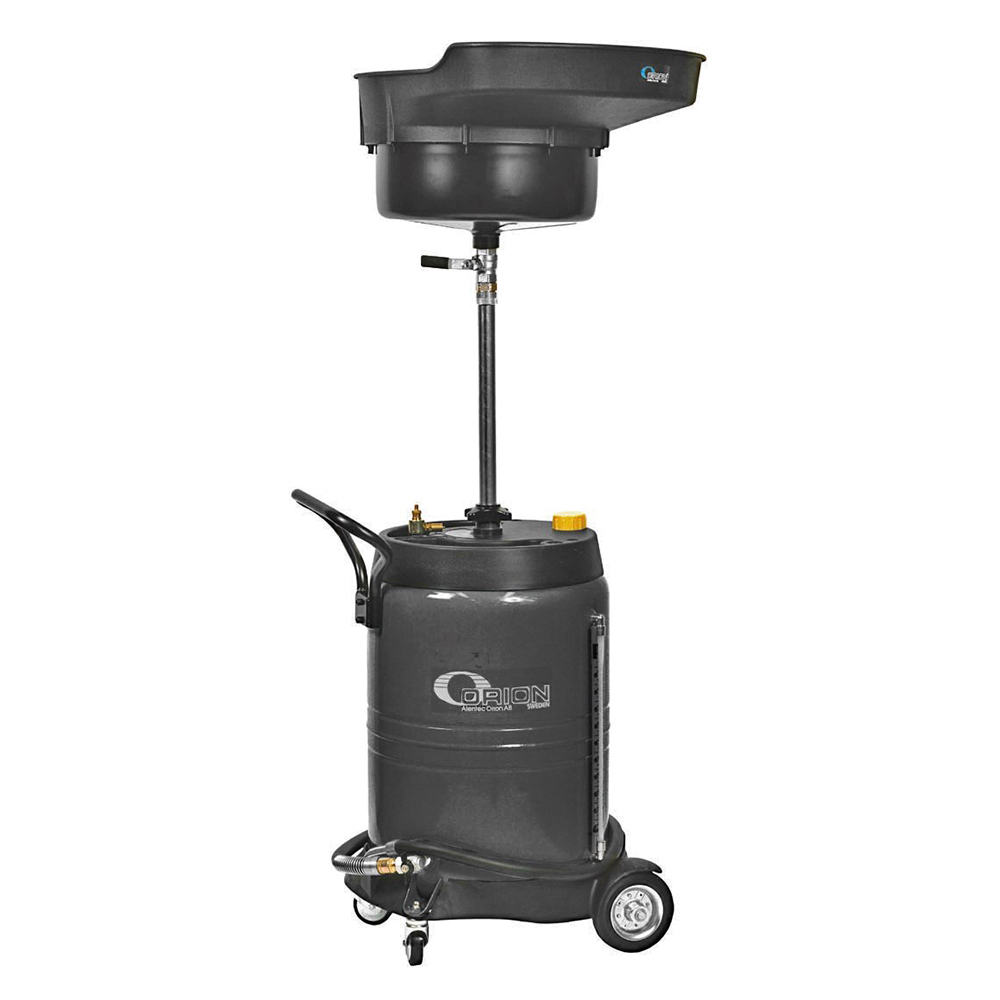 Denne olieopsamler er udstyret med en asymmetrisk drejelig skål og en specialdesignet sprøjteskærm, der minimerer spild og gør arbejdet mere effektivt. Øverst på beholderen er der en fast bakke til værktøj, skiver og oliepropper, så du altid har det vigtigste lige ved hånden. I bunden er der en smart holder til afløbsslangen, som holder arbejdsområdet ryddeligt og organiseret. En gennemtænkt løsning, der kombinerer funktionalitet og brugervenlighed.