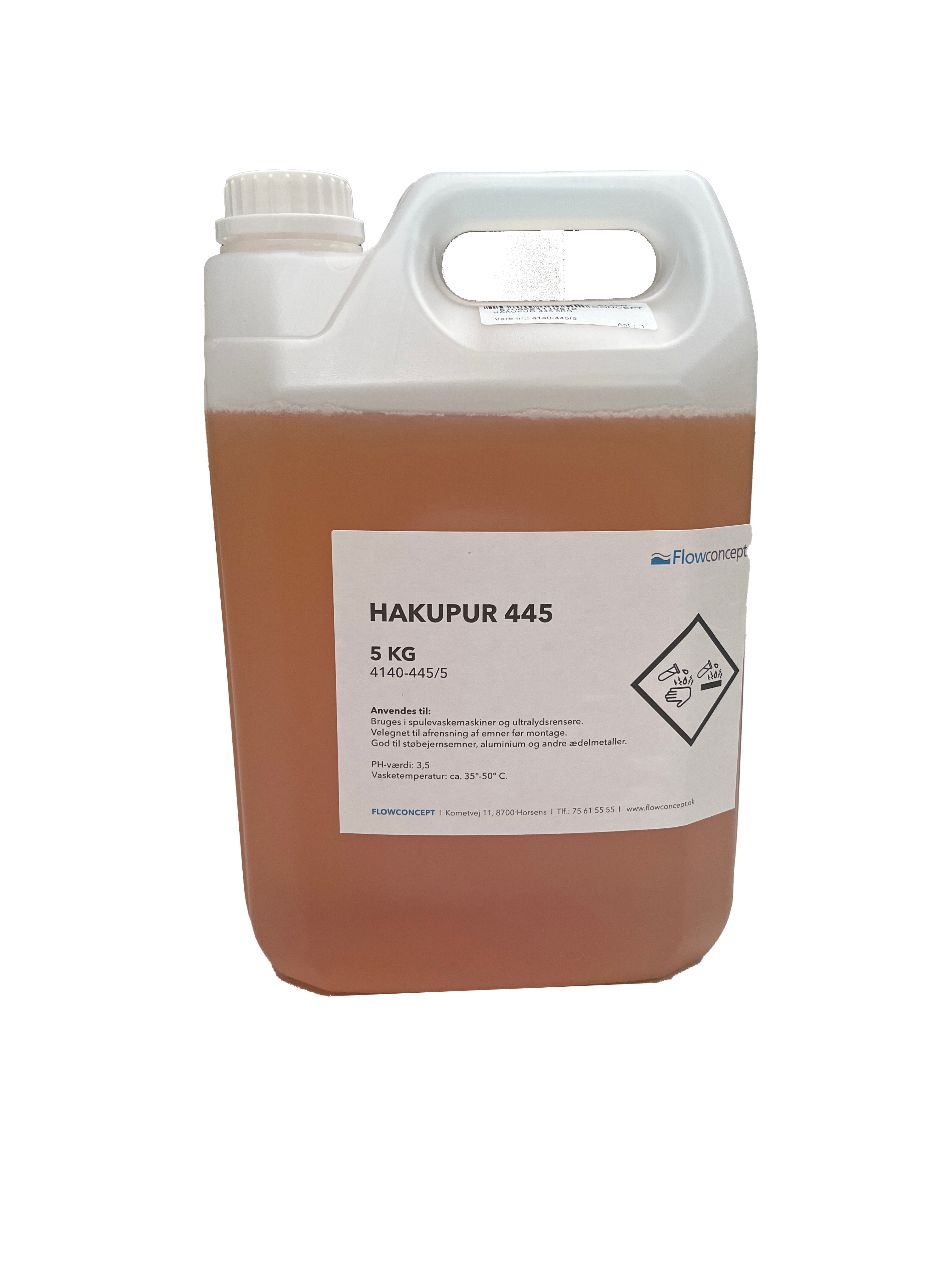 Hakupur 445 er en effektiv rensevæske, der er specielt udviklet til brug i spulevaskemaskiner og ultralydsrensere.