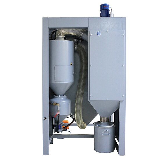 Blæsepistolen og cyklonen sikrer en perfekt fordeling af luft og blæsemiddel, hvilket også sikrer, at du hele tiden har god synlighed gennem det store vindue. Placering af emner er nemt gennem de store døre.