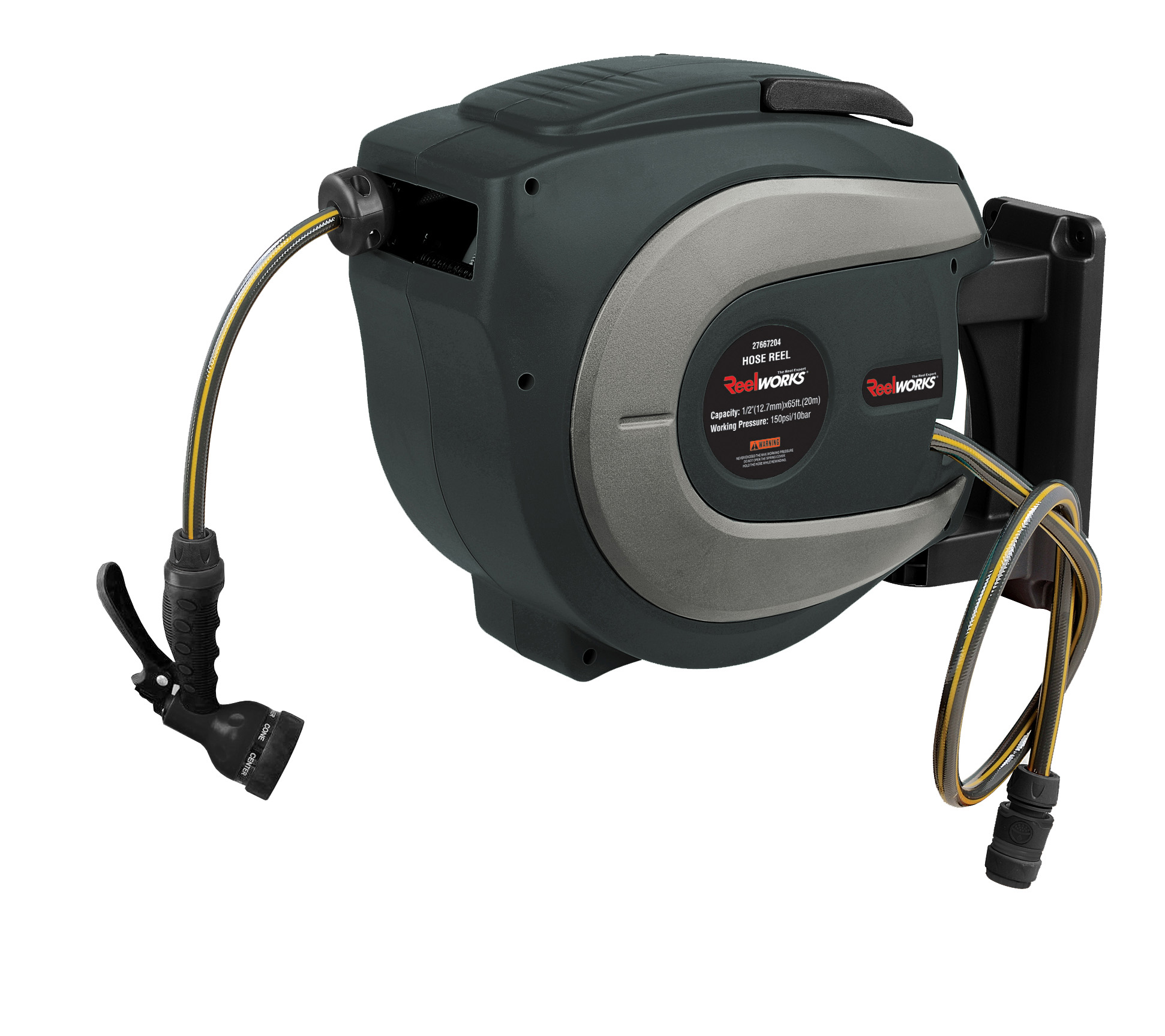 Slangeopruller i robust og holdbar konstruktion af slagfast plast i høj kvalitet. Den er let og kompakt og sikrer et roligt og kontrolleret tilbagerul af slangen. Slangeoprulleren er nem at transportere med det praktiske håndtag.