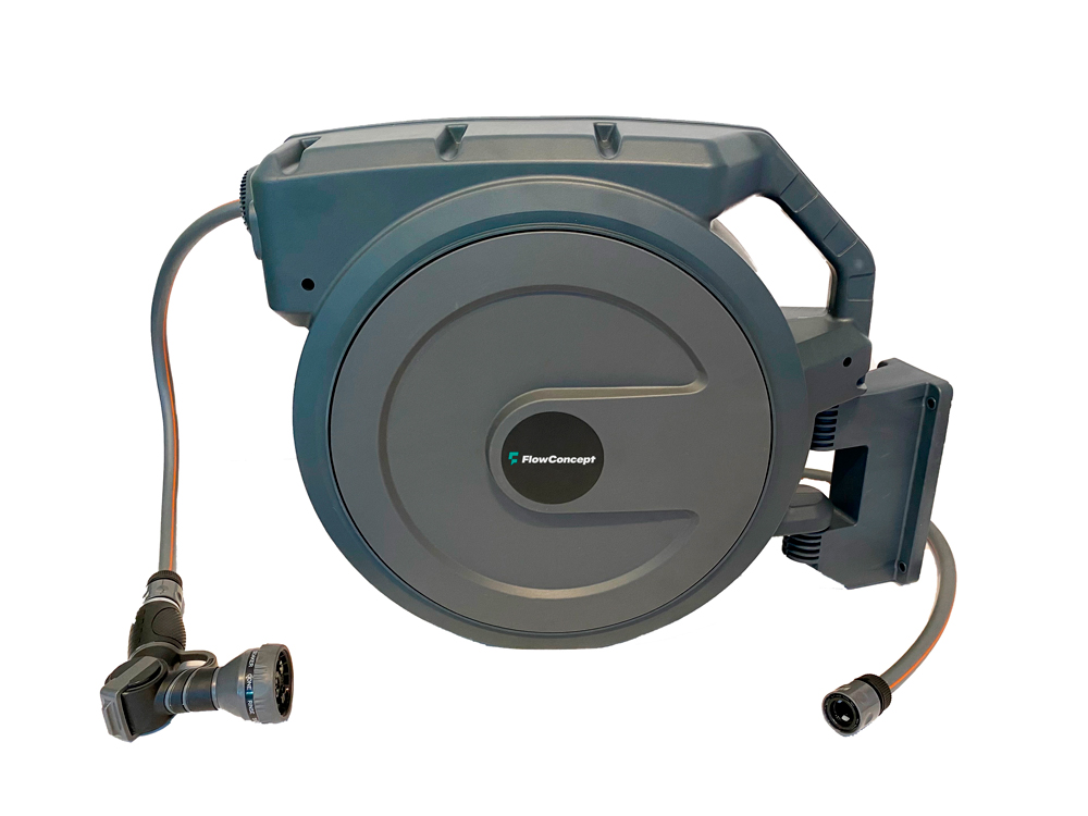 Aut. slangeopruller grå plast, 8 bar
