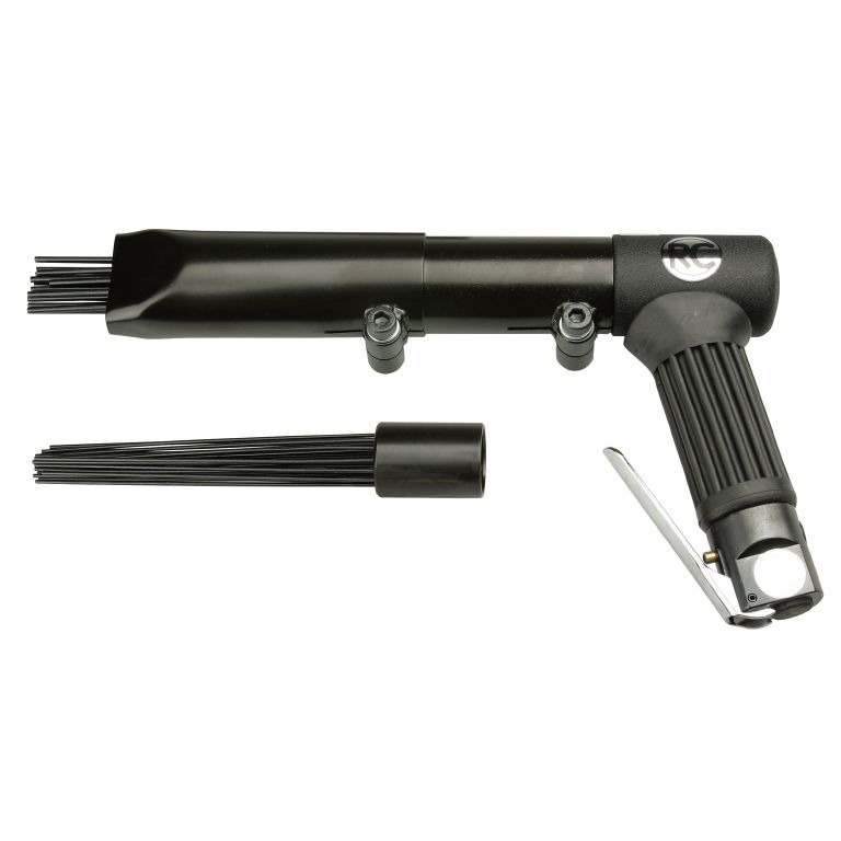 Letvægts nålehammer ideel til mindre opgaver. Til medium rustfjerning med 19 / 3 mm nåle. Til rustfjerning ved trange steder med 29 nåle / 2 mm Isoleret håndtag med udluftning fortil. Til brug på tykt metal eller sten/beton (Ikke til tyndt metal) Slag per. min.: 3000 Lydniveau: 94 DB Vibration: (ISO-28927-9) 17,7 m/s² Tilslutning: 1/4"" i.g. Min. slangedimension: 5/16"