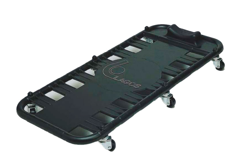 - Lagos liggebræt er konstrueret med en solid rørramme (Ø 25 x 1,5 mm) og er beklædt med oliebestandigt gummi for holdbarhed. Liggebrættet er udstyret med en komfortabel gumminakkestøtte, der sikrer en behagelig arbejdsstilling, samt 6 svingbare hjul, der gør det nemt at flytte rundt. Bemærk, at liggebrættet har en maksimal belastningskapacitet på 150 kg.
