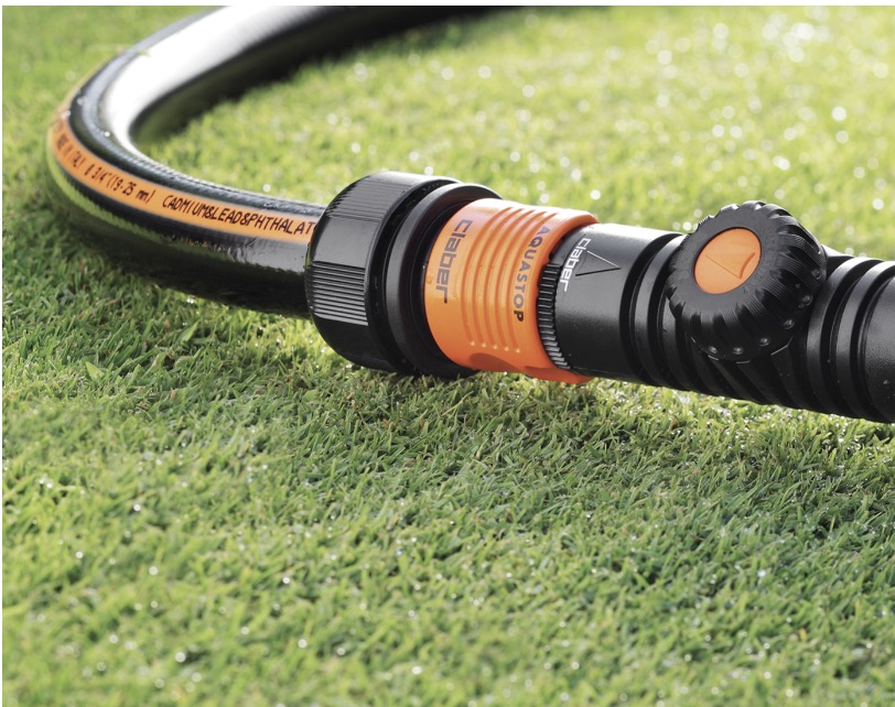 ERGONOMISK DESIGNAutomatisk kobling til 3/4” (Ø 19 mm) slanger med aquastop-ventil. Når den er indsat i enden af slangen, afbrydes vandstrømmen ved frakobling af hanestykket.