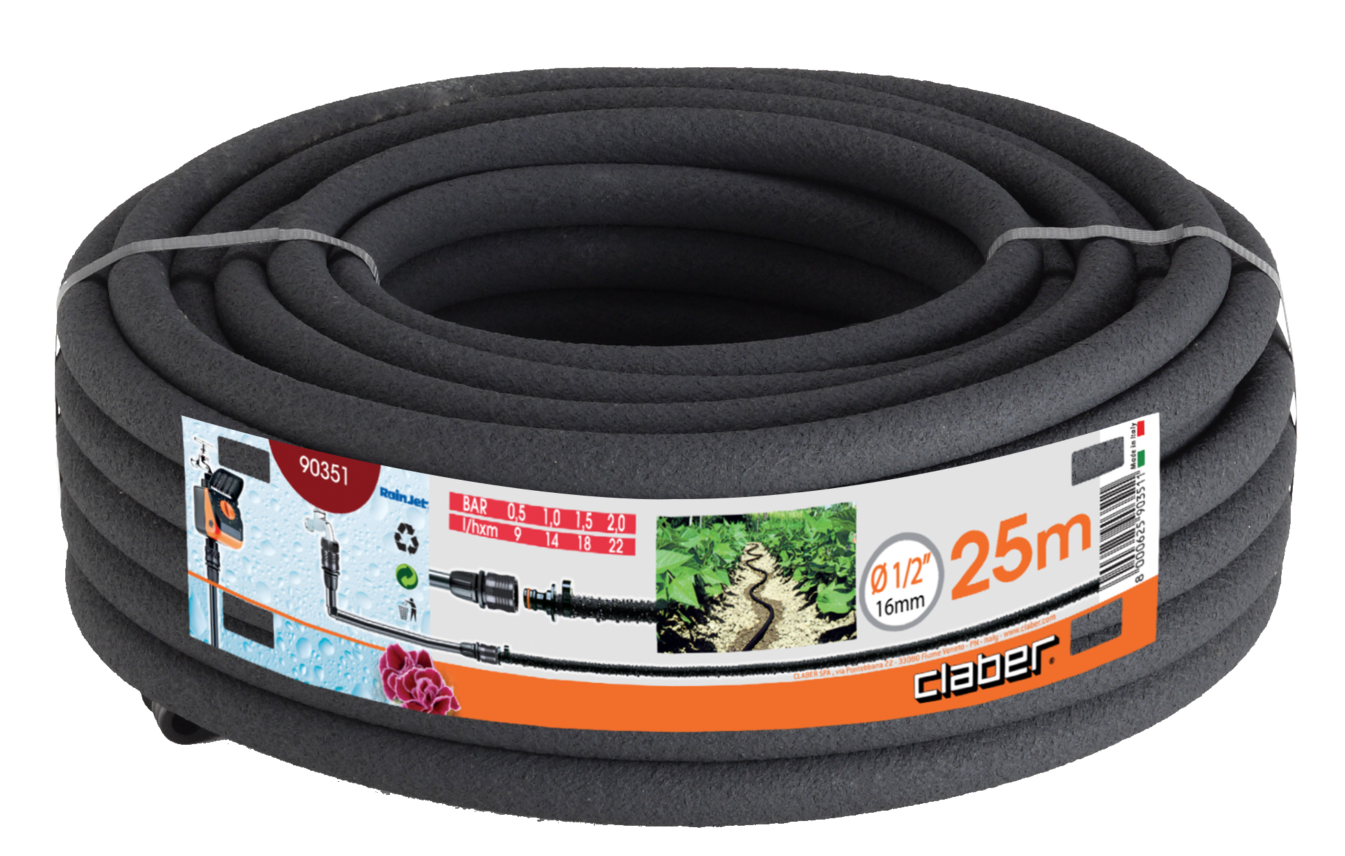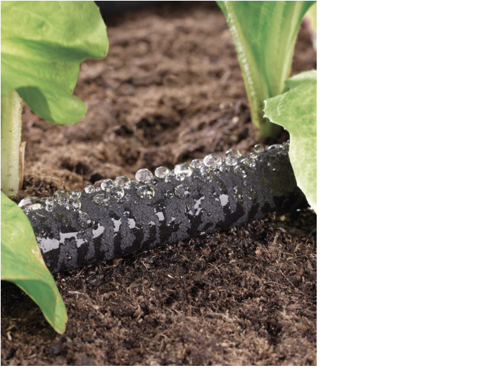 En hurtig og enkel løsning til at vande blomsterbede og buske: vandet kommer ud af utallige små huller på overfladen af den porøse slange og fugter jorden gradvist, hvilket reducerer vandspild.