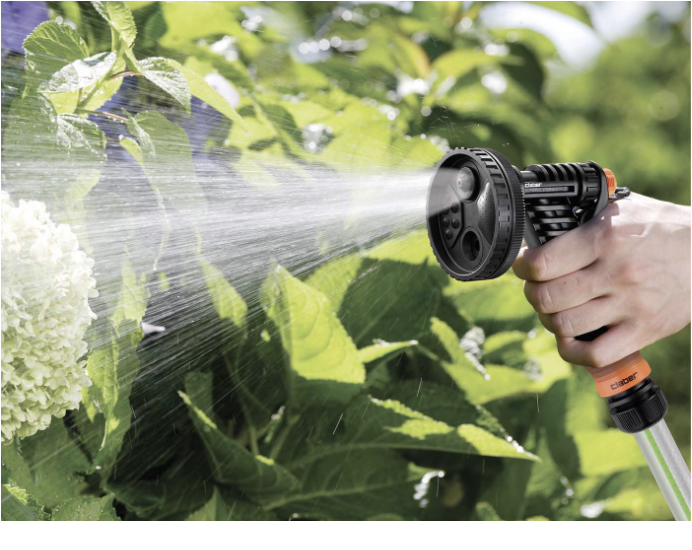 Vores multifunktions have spraypistol giver dig mulighed for at vande haven med et bredt udvalg af vandstråler: fra jetstråle til blød vifte, kraftig stråle, blid tåge, bruserstråle og drypstråle. Den er udstyret med en vandknap, der styres med fingespidsen, så du nemt kan justere vandtrykket efter behov.