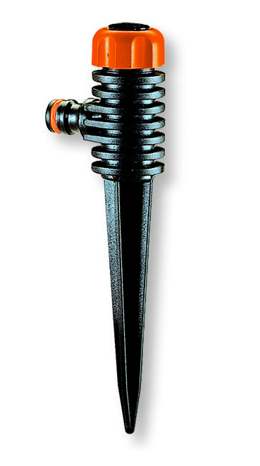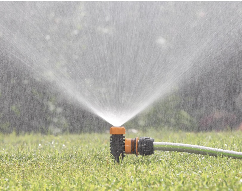 Stationær sprinkler klar til øjeblikkelig brug. Den garanterer ensartet og skånsom vanding uden pytter og skaber en fin tågeregnseffekt.