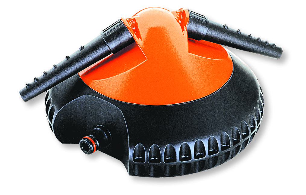 Det specielle afrundede design muliggør nem bevægelse over græsplænen. Forskudte dyser i en vifteform opnår en ensartet spray og imponerende vandspil.