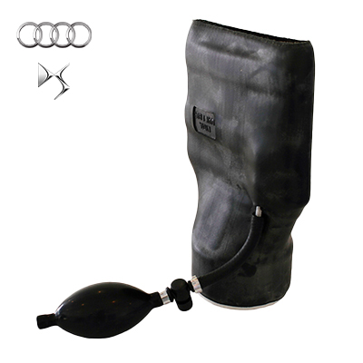 Mundstykke med håndpumpe og 4" slangetilslutning.